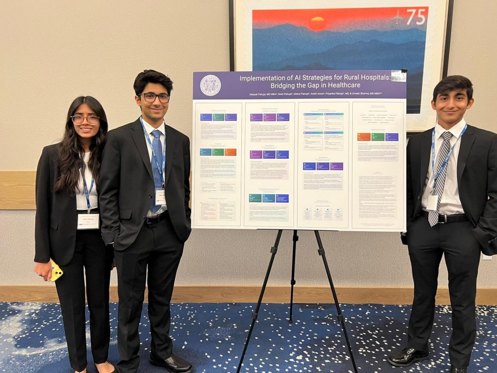 On June 14th, The Prescriptive Jurist team, consisting of team members Anish Arora, Mehul Pahuja, and Nishi Pahuja presented their research on the Implementaion of AI Strategies for Rural Hospitals: Bridging the Gap in Healthcare at Lincoln Memorial University’s CME Conference in Tennessee. Led by Dr. Deepak Pahuja and guided by Akshita Arora, Jyoti Arora, Neeraj Arora, Dr. Umesh Sharma, and Dr. Priyanka Pahuja, the three showcased their knowledge on the legal and ethical aspects of AI in rural healthcare, AI’s clinical applications, and operational challenges. The team also won the Best Preceptor Poster award; make sure read an overview of the presentation Deepak Pahuja’s post, “Implementation of AI Strategies for Rural Hospitals: Bridging the Gap in Healthcare“. Don’t forget to check out the website covering all of the content, too!